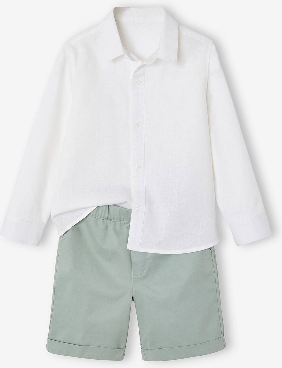 VERTBAUDET Conjunto de ceremonia camisa cuello mao y bermudas niño verde sauce